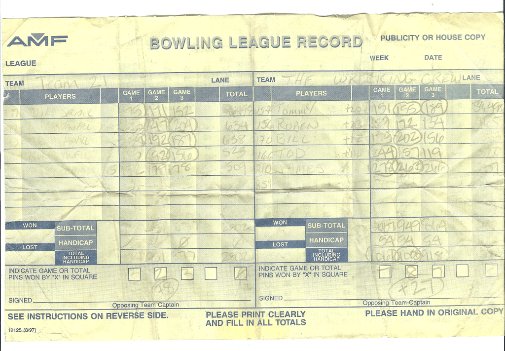 My greatest achivements are 5 x 300 (perfect) games and 1 x 800 series. My actual scores were 278 – 263 – 266 = 807. My highest average in league was 218. I’m very proud of those achivements.